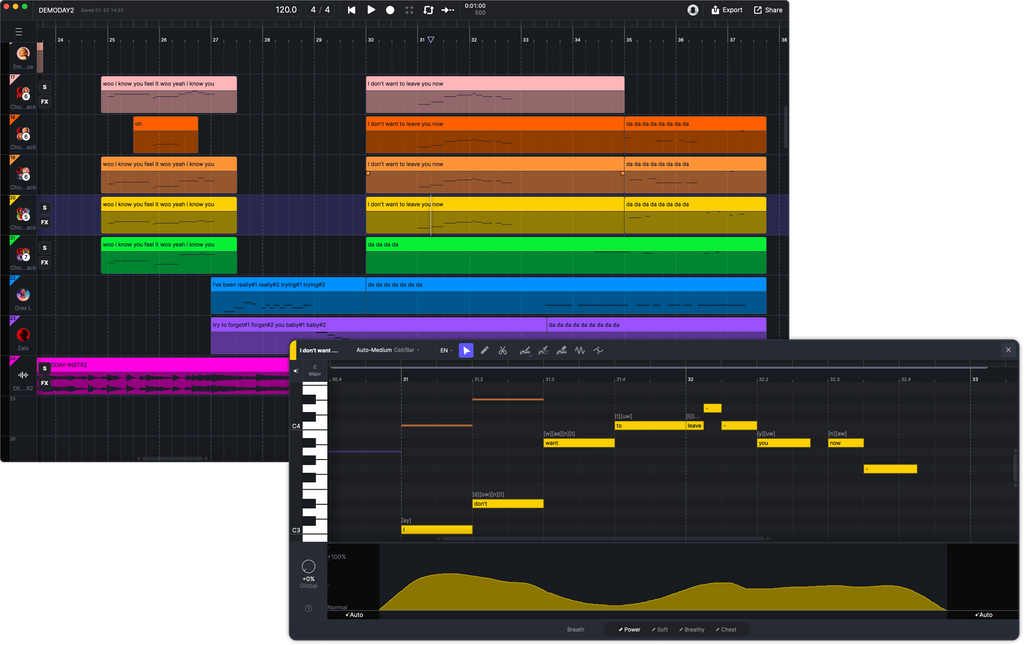- Deep vocal customization through VoiceMix and advanced vocal editing, allowing users to blend voice timbres, and control pronunciation, pitch, vibrato, emotion, tension, and more for highly tailored vocal performances.