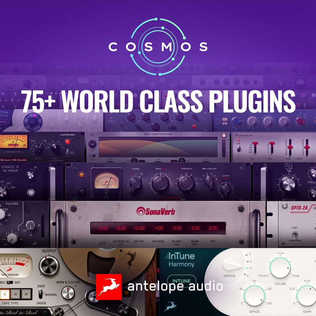 75+ World-Class Plugins to Bring Your Vision to Life.Antelope Cosmos gives access to all 75+ Antelope Native Plugins covering everything you need to mix, master, and produce: from compressors, EQs, reverbs, delays, and pitch correction to modulation and analysis tools. The collection combines faithful recreations of iconic studio gear heard on countless chart-topping records, with a growing selection of exclusive modern plugins - developed in-house to inspire new creative possibilities.