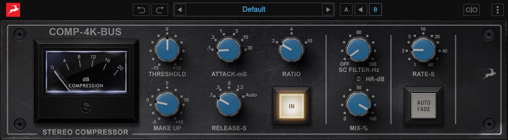To bring back the essence that built its reputation we have made a faithful recreation of the original design by modeling a unit from one of those early consoles. To stay true to the heritage of this compressor and to remind people where the circuitry came from we also included the “Auto Fade” feature found only on the original center sections with an adjustable rate in seconds.