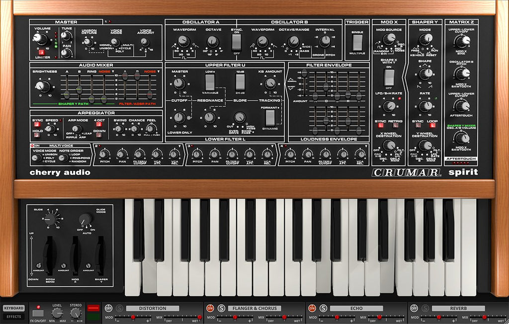 The Mystical Italian Classic ReimaginedCrumar Spirit by Cherry Audio is a meticulously crafted virtual recreation that captures the unique and captivating features of the exceptional analog monosynth from 1983, originally designed by some of the most legendary figures in the synth industry. In collaboration with Crumar, Cherry Audio has reopened a time capsule to revive this Italian cult classic and thoughtfully elevated it with their signature style.