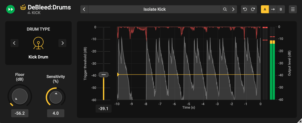 For optimal results, DeBleed:Drums leverages neural network technology to separate drum kit elements, like kicks and snares, while DSP algorithms protect transients for clarity. Its smart triggering logic sets thresholds to remove bleed efficiently, delivering a cleaner and more natural drum mix.