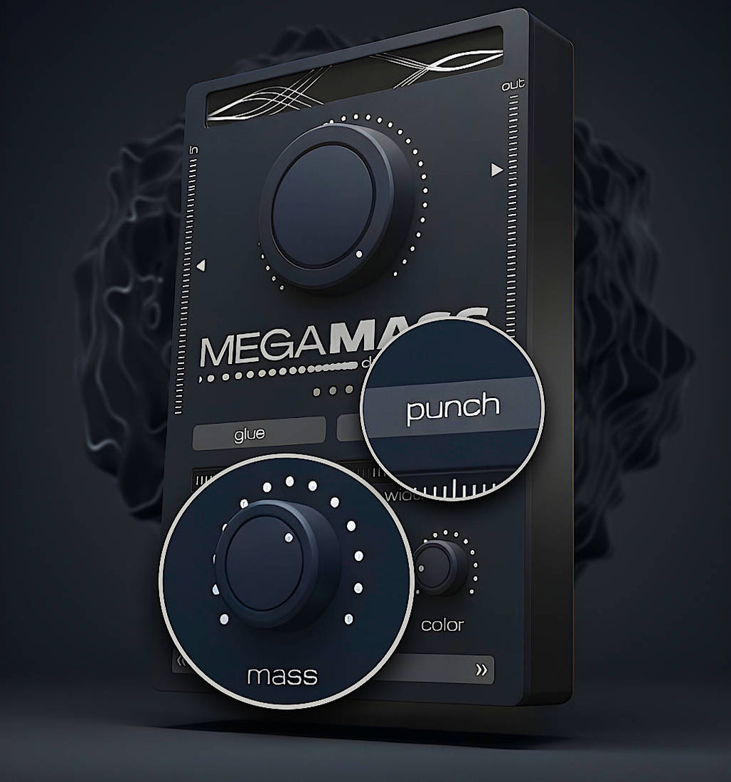 Megamass lets you shape your atmosphere and stereo image with ease. The Space control adds dark, booming reverb that places your sounds in a huge, warehouse-like environment, while the Width knob lets you go from tight mono to an ultra-wide field — perfect for giving drums depth and dimension in any mix.