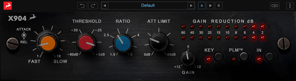 Based on the hardware module that complemented the 902 and 903 units, the original gate/expander from the 1980s became essential in drum mixing and live sound engineering. We carefully measured a preserved unit to bring its iconic snappiness and musical envelope control into the Synergy Core Native world.